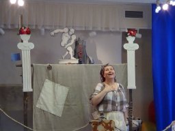 том, что надо ценить, то что у тебя есть. Спектакль идет 35-40 минут.